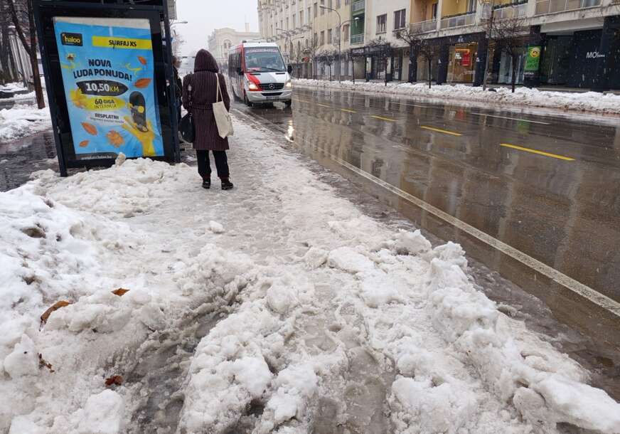 Fotografije nastale danas u samom srcu Banjaluke pokazuju stanje koje se teško može opravdati. Prilaz pješačkim prelazima na semaforu i autobusko stajalište, mjesta koja bi morala biti prioritet zimskog održavanja, prekriveni su ugaženim snijegom, ledom i bljuzgavicom.